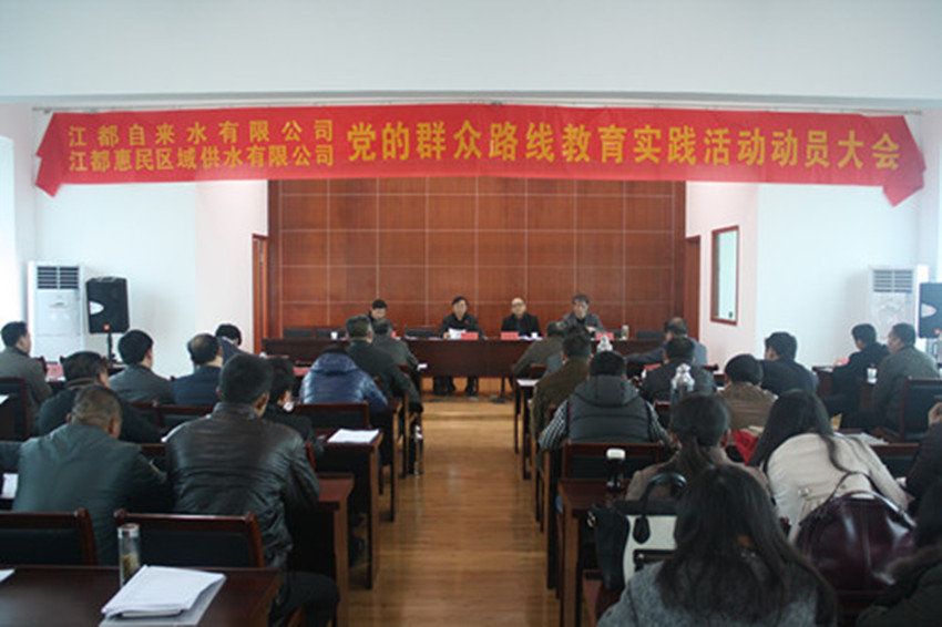 3月25日下午,區(qū)自來水公司、惠民區(qū)域供水公司聯(lián)合召開黨的群眾路線教育實(shí)踐活動(dòng)動(dòng)員大會(huì),區(qū)城鄉(xiāng)建設(shè)局副局長許金林、局督導(dǎo)組相關(guān)負(fù)責(zé)同志陳修榮、黃坤出席會(huì)議,公司全體黨員干部和老領(lǐng)導(dǎo)、退休黨員干部、服務(wù)對象代表共80余人參加了會(huì)議。