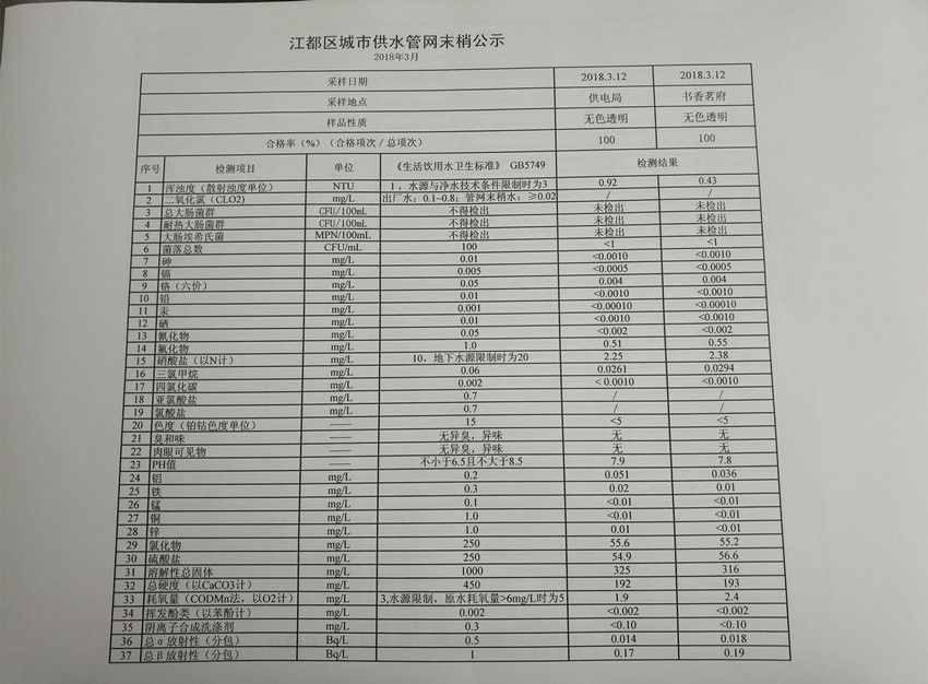水質(zhì)公示