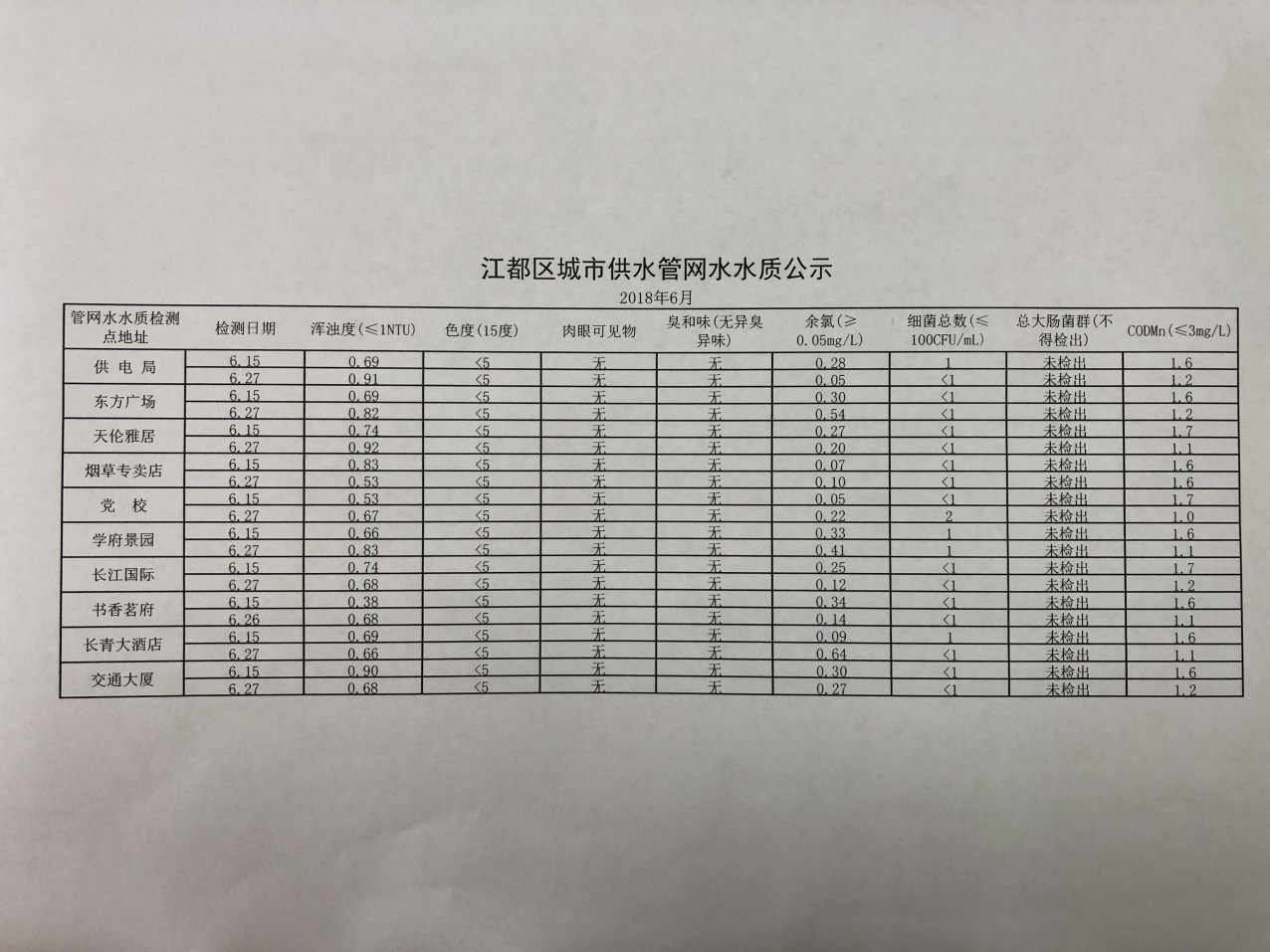 水質(zhì)公示