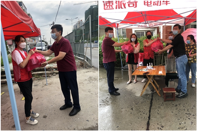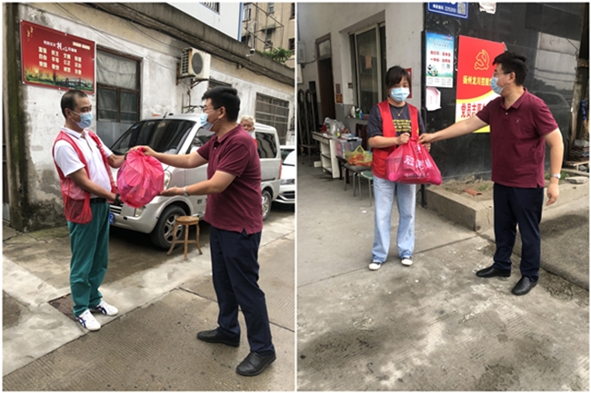 本次水務公司對口支援防疫志愿服務社區的是仙女鎮樊莊社區,王智勇帶領公司黨政工領導代表先后來到該社區無物管小區的公交公司宿舍、女神公寓、綜合樓、龍都花園、東方苑、建材廠和虹都苑等防疫執勤點,為堅守防疫一線的工作人員送上泡面、牛奶、蘇打水和口罩等生活、防疫物資,并向他們致以誠摯的問候,感謝他們在疫情防控緊要關頭,迎難而上、積極應對,始終做好“守門員”盯緊“防疫線”,用實際行動踐行初心使命,用堅毅的品格將“我為群眾辦實事”貫徹到底,并落在當前最為關鍵的抗疫實處。每到一處,王智勇都會詳細了解執勤點的干部職工的個人防護、崗點值守、后勤保障等情況,鼓勵大家繼續發揚好連續作戰的精神,細致工作,科學防控,在履職盡責的同時做好自身防護,確保用更為良好的精神狀態繼續幫助樊莊社區做好常態化疫情防控工作,與全區人民一道堅決打贏打好這場疫情防控戰。